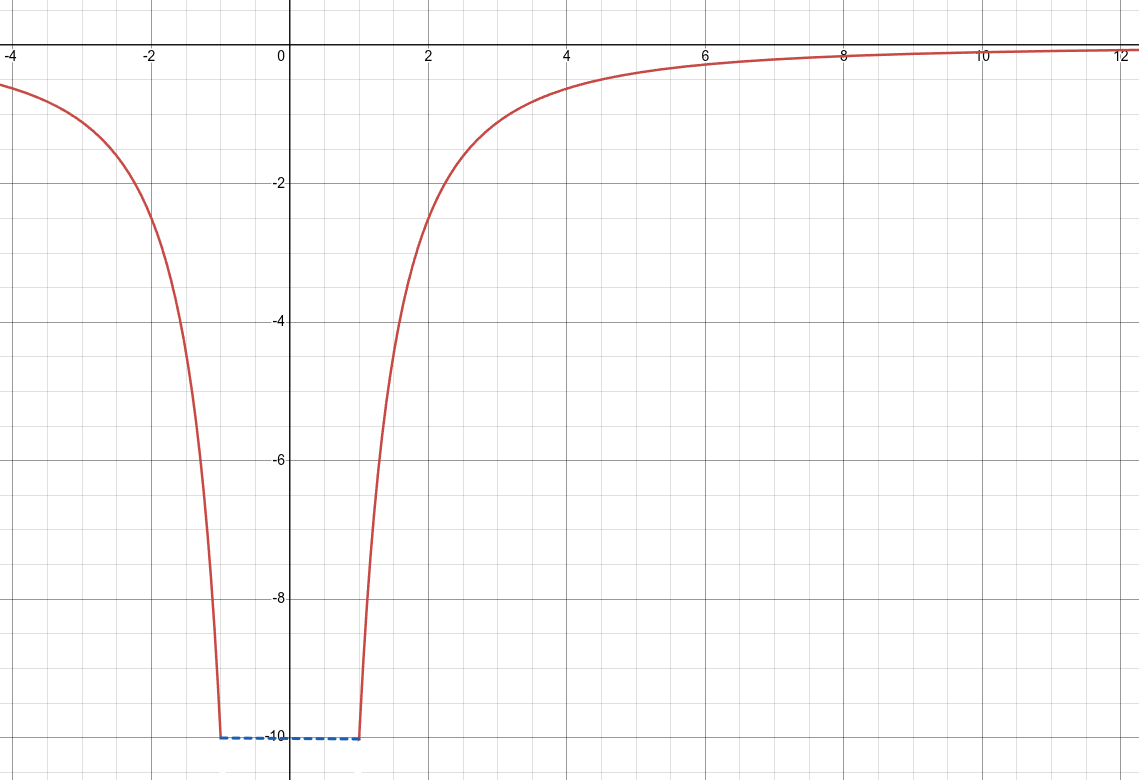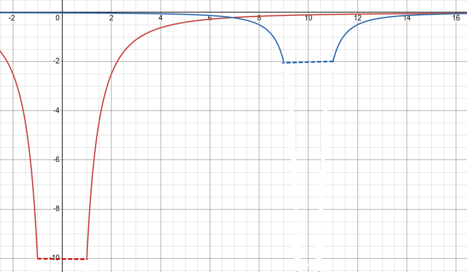 We start, as always, with the energy conserving inverse square function, this time set to represent a stationary particle with a mass of 10.1